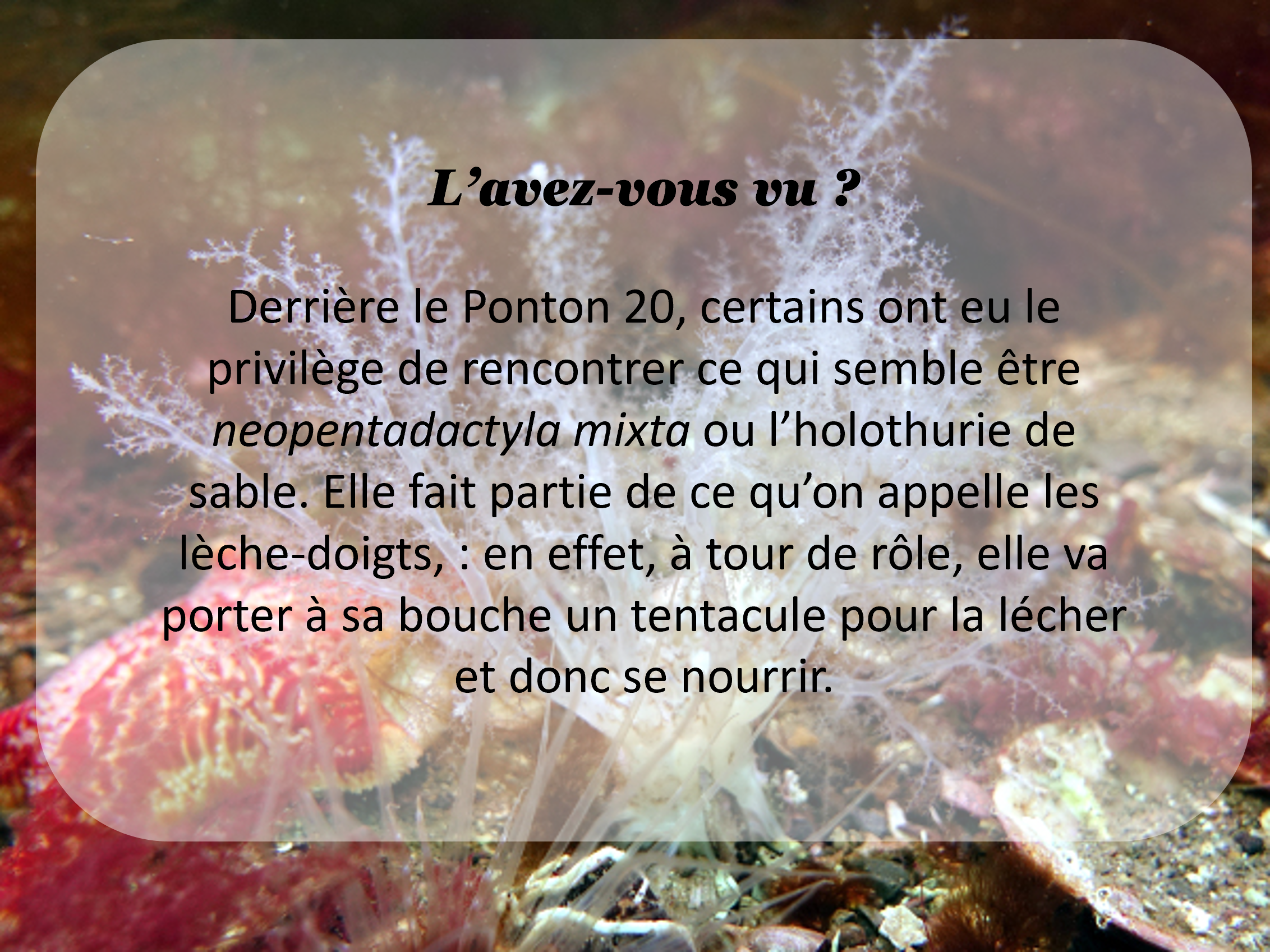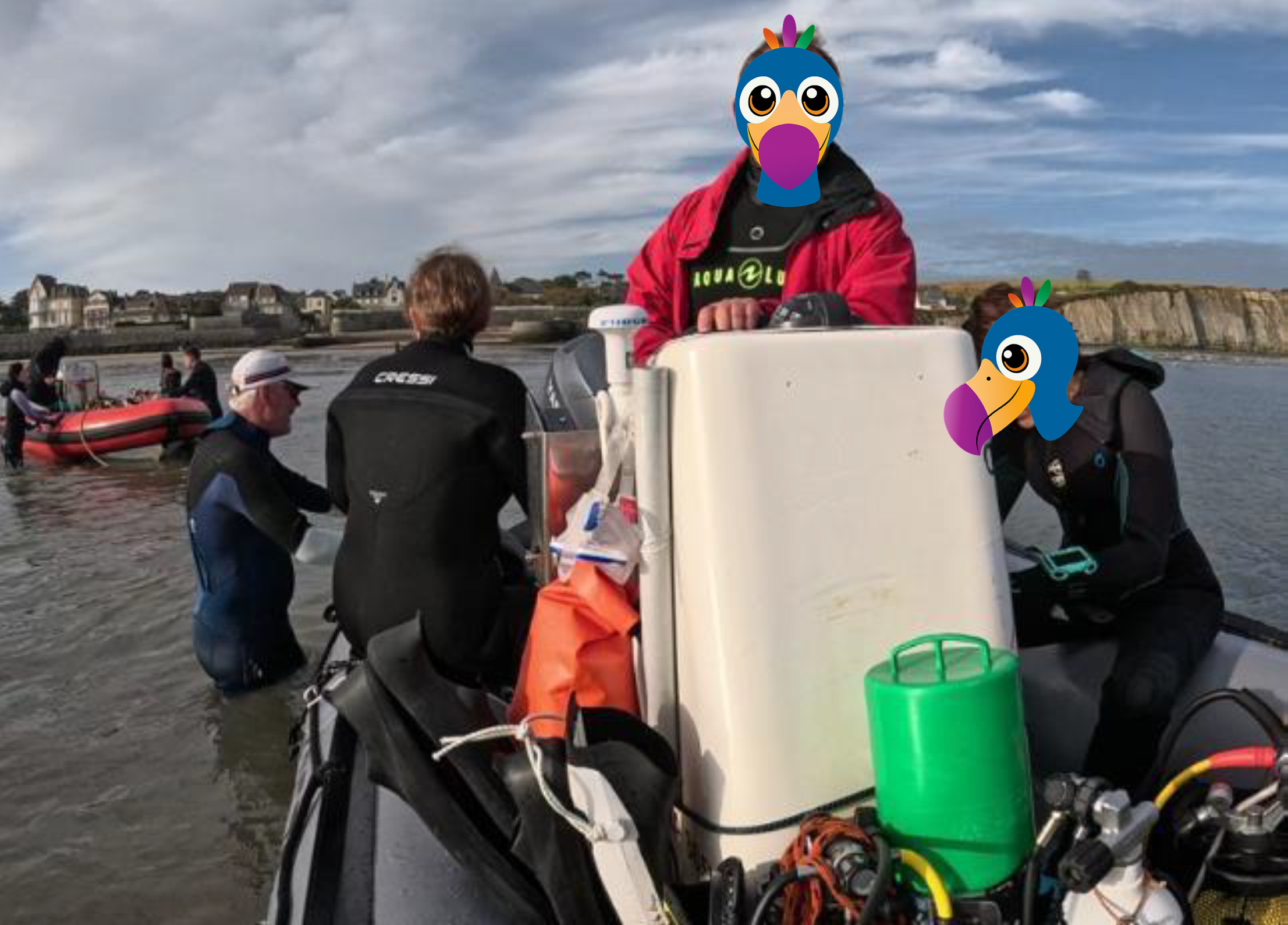On continue nos WE à Arromanches avec pas moins de 11 plongeurs sur ce long WE. Au Programme : le ponton 20, L’Harpagas, le Roseberry. Ainsi que ce que nous appelons le chaland du Whisky qui ne serait finalement pas un chaland… Les discussions vont bon train à ce sujet entre nos plongeurs. Enfin, nos plongeurs ont tenté les Bombardons : ce sont des caissons métalliques d'une dimension de 60 × 8 m. Ils étaient reliés entre eux aux endroits choisis et faisaient office de brise-lames au large des ports artificiels. Malheureusement, la tempête de mi-Juin 44 leur a causé de gros dégât. Une cardinale marque l’endroit. Enfin, nos plongeurs ont tenté l’Empire Broadword mais ont été chassés par des plaisanciers pêcheurs particulièrement agressifs. Snif…